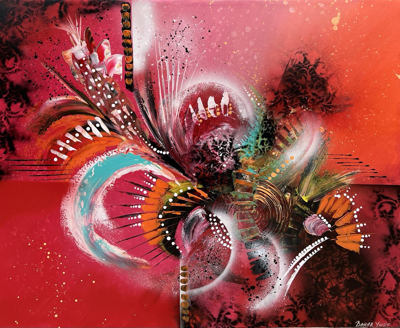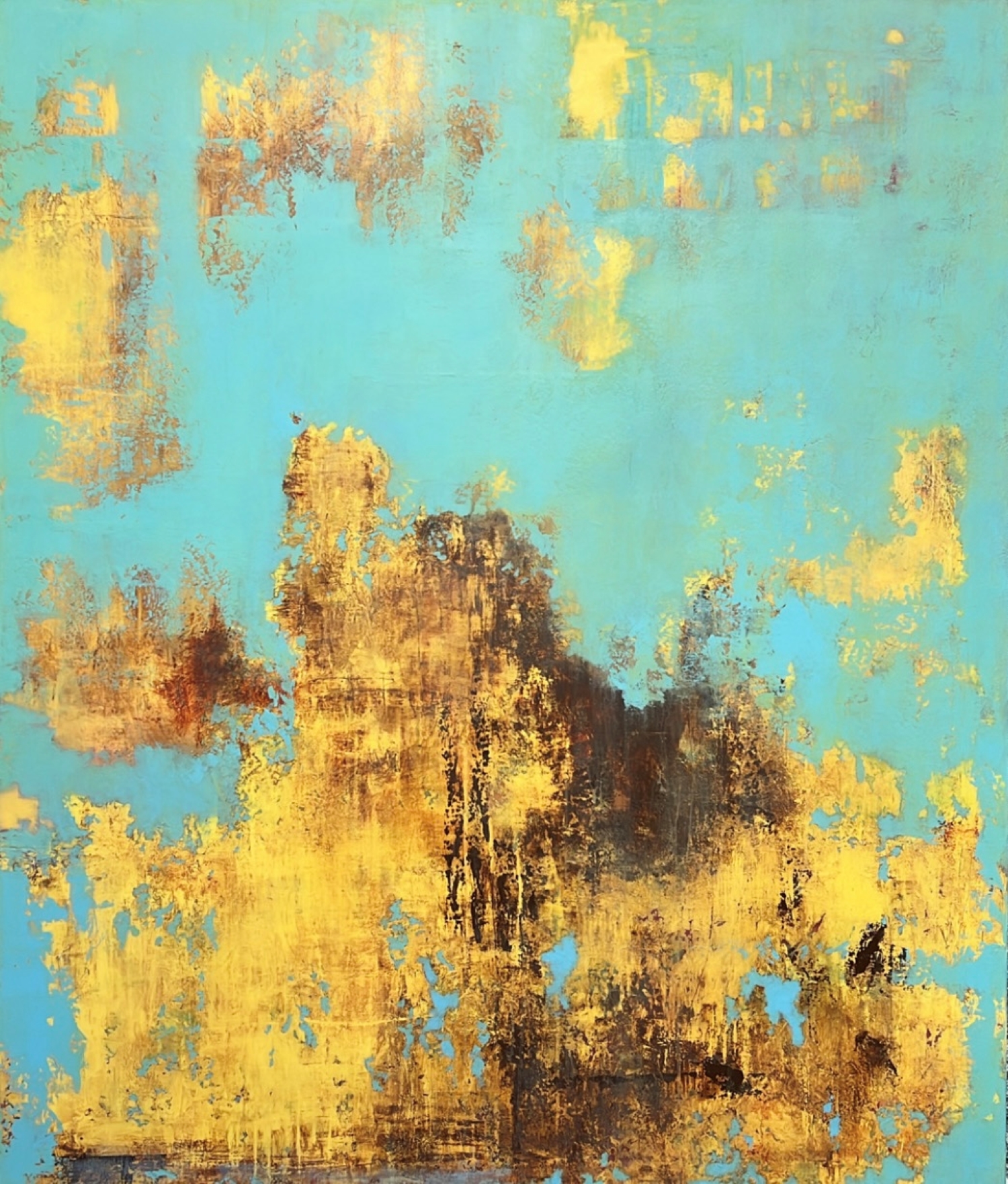 Cotton Canvas, Acrylics, Spray Paint, Golden Leaf